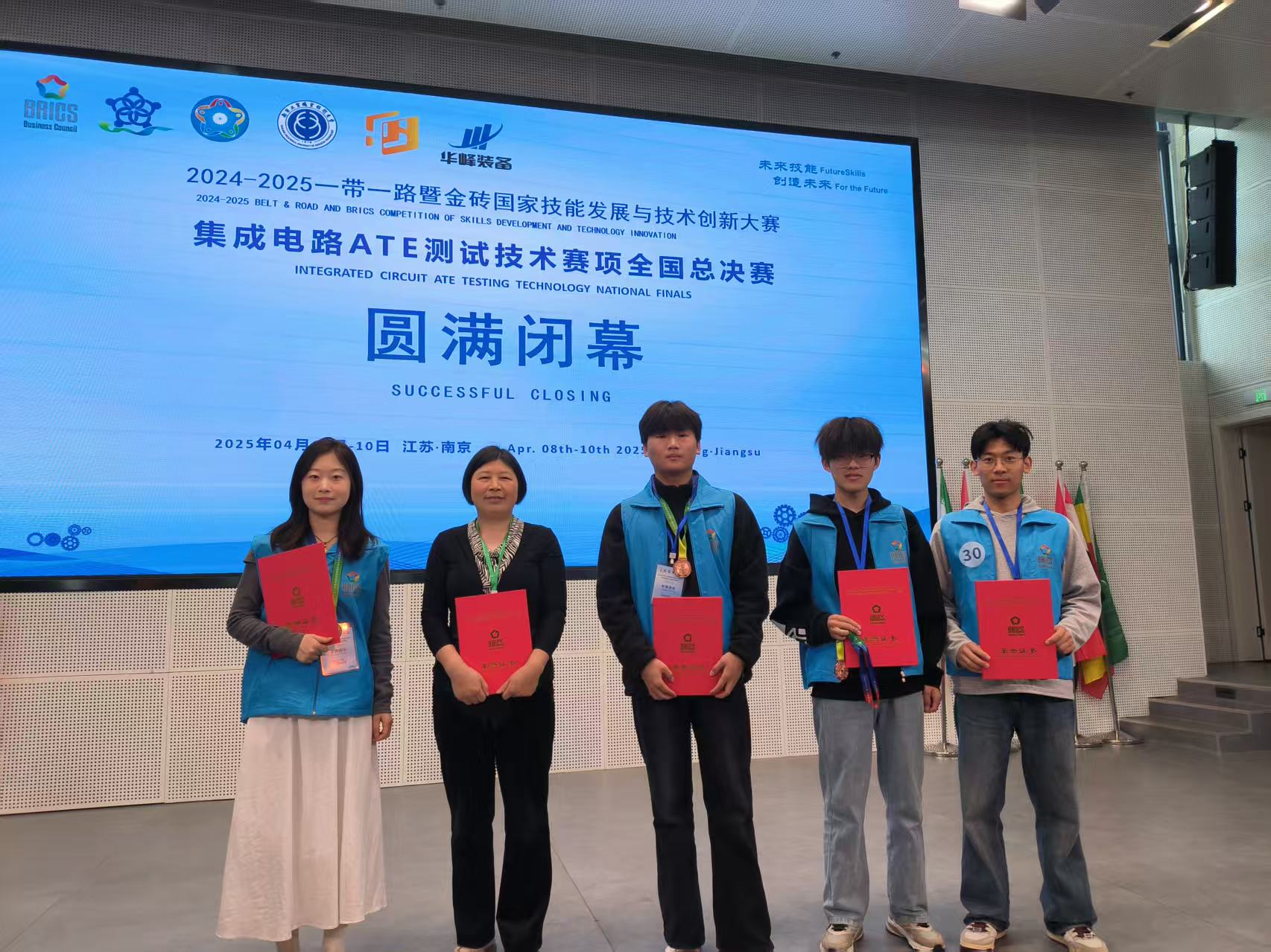 4月8日至10日,2024-2025一带一路暨金砖国家技能发展与技术创新大赛(集成电路ATE测试技术赛项)全国总决赛在南京工业职业技术大学举行,该项比赛共吸引了来自全国14个省以及直辖市的选手同台竞技。我院詹文法、郑江云和蔡雪原三位老师指导的两支队伍(杨晨露、蒋书航;戚盛源、李荣耀)分别取得了国赛二等奖和三等奖的好成绩,同时我校获得优秀组织奖单位。