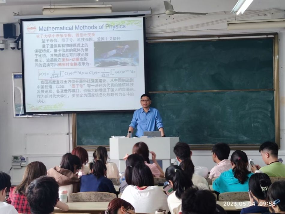 5月4日,我院章礼华老师在B楼205教室开展了一次《数学物理方法》课程教学示范课,示范课内容为傅里叶变换,授课班级为物理学2021级1、2班。我院部分教师观摩了此次示范课。