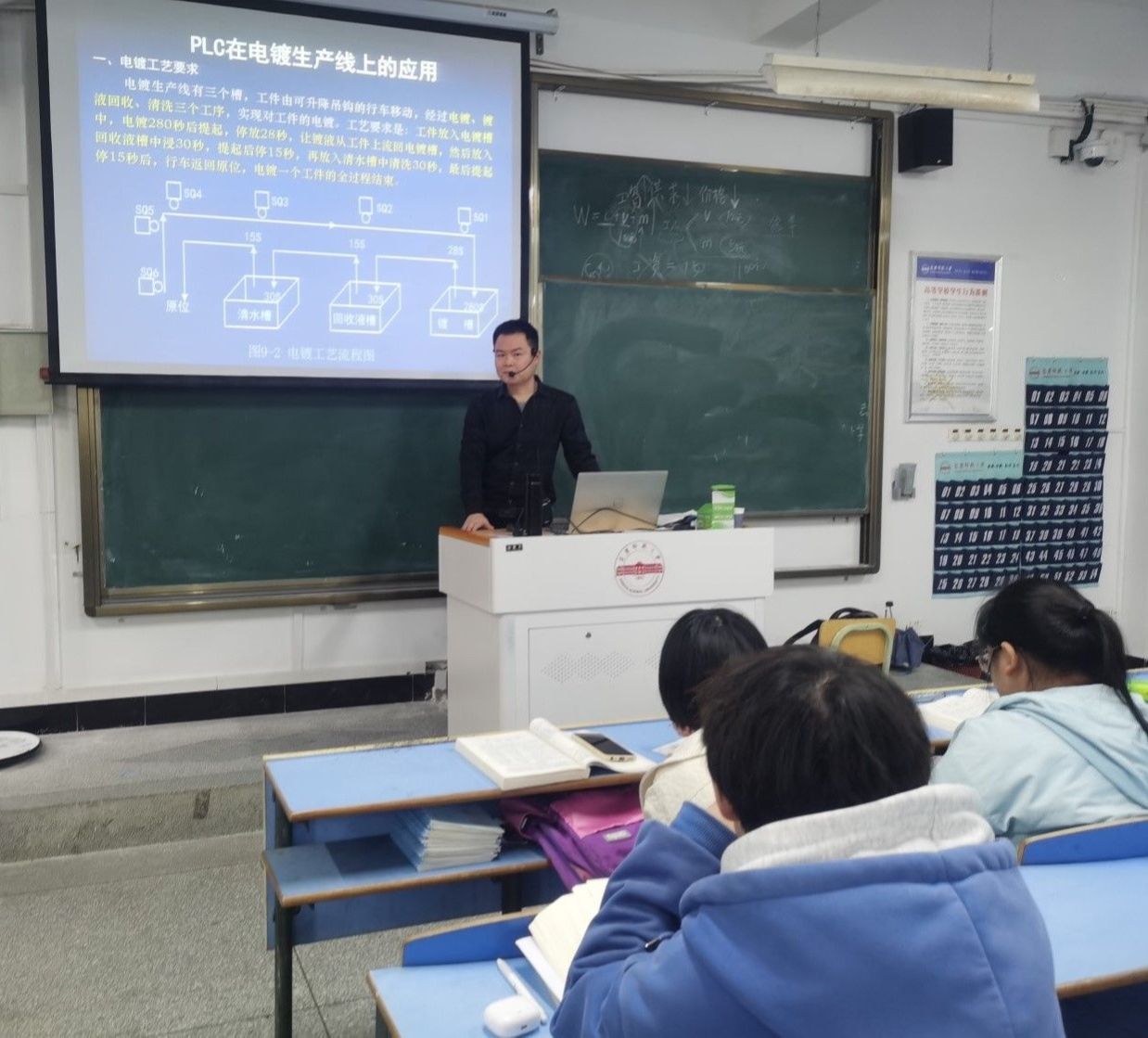 陈世军老师所授课程为《电气控制与可编程控制器》,所授主题为“PLC在电镀生产线上的应用”。陈老师以一个实际生产案例,运用PLC控制系统设计的方法开展教学,并融入课程思政内容。以学生为主体,教师为引导的教学模式,能够激发学生的学习兴趣,培养学生的团队协作能力和解决工程实际问题的能力。