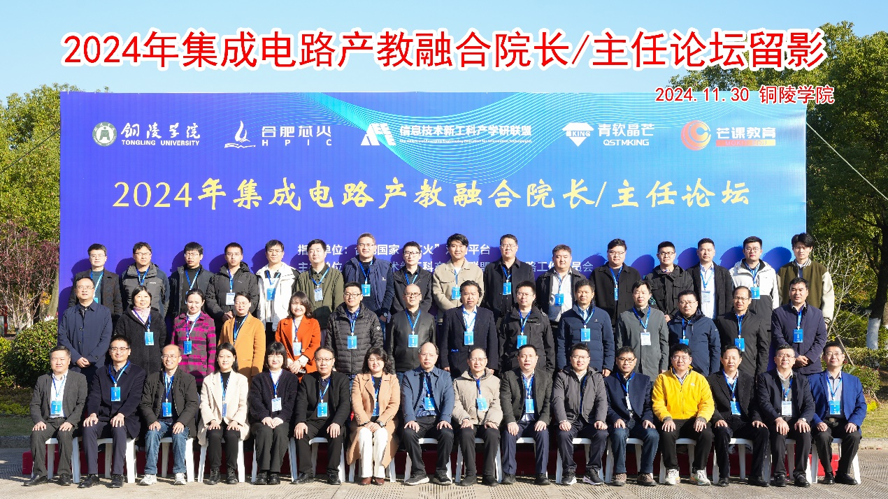 11月29-30日,由信息技术新工科产学研联盟集成电路教育工作委员会主办、铜陵学院电气工程学院、安徽青软晶芒微电子科技有限公司和安徽芒课教育科技有限公司承办的2024年集成电路产教融合院长/主任论坛在铜陵市召开,我院分管教学的章礼华副院长等一行应邀参加了此次研讨会。章礼华在会上报告了我院办学基本概况及微电子科学与工程专业实习实训开展情况,并就实习实训开展中的难点和痛点问题进行了交流探讨。