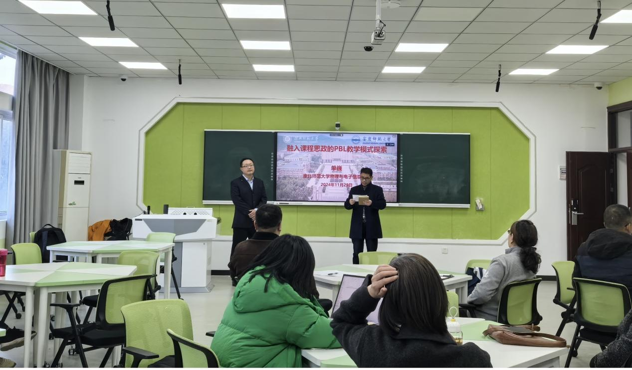 11月29日,伟德国际victor1946在教学楼智慧教室D204举办教师教学能力提升培训活动。淮北师范大学物理与电子信息学院单巍副教授应邀开展以“融入课程思政的PBL教学模式”为主题的专题培训,学院近年来引进的40余位专任教师参加了本次培训,活动由副院长章礼华主持。