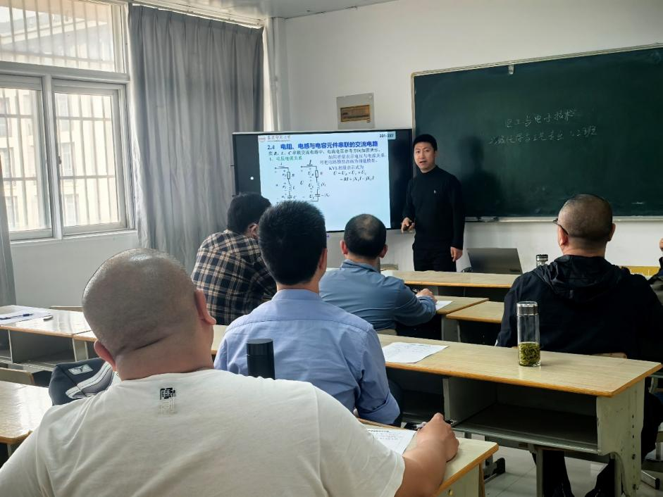 应曙博士进行了15分钟的课程讲授展示,内容围绕电阻、电感与电容元件串联的交流电路核心知识点展开,充分展现了其生动的教学风格。讲授结束后,教研室全体教师对应博士的授课进行了深入点评与讨论,结合教学设计、课堂互动、知识点呈现方式等多个角度提出了宝贵的意见和建议。