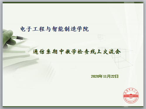 为全面深入了解教学运行情况,进一步加强教学常规管理,及时发现和解决教学中存在的问题,密切关注学生的学习状况,切实提高人才培养质量,根据学校期中教学检查工作要求,2020年11月22日下午, 通信系利用腾讯会议软件召开期中教学检查座谈会,通信系部分老师和学生代表参加了在线会议。