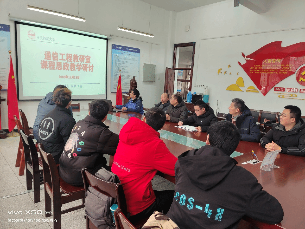 12月18日,通信工程教研室在稼先楼南119会议室教室开展课堂思政教学的集体备课活动,探讨课堂教学组织与教案设计,学院副院长黄忠、学院学术委员会刘全金教授参加会议,通信工程教研室全体教师老师和学生代表参加了此次活动。