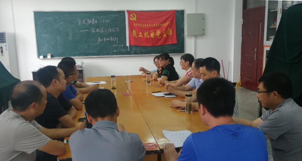 教工机电党支部召开“党史专题学习”座谈会,支部全体党员交流分享学习习近平关于学习党史国史重要论述的心得体会,回顾中国共产党已经走过的99年艰辛而辉煌的风雨历程。从朱德不做”特殊党员”、贺龙“把我脑壳砍了也要跟着共产党走”、张富清的初心本色等一个个故事中,同志们的思想不断受到震撼和洗礼,精神受到涤荡和激励,更让他们牢记自身肩负的责任和使命。