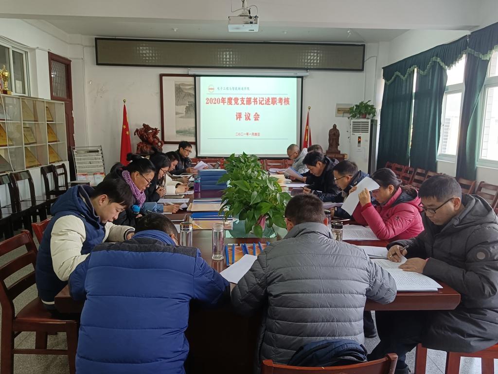 1月4日上午,我院党委在学院会议室召开2020年度党支部书记述职考核评议会,对下属10个党支部进行年度述职考核,考核分查阅支部档案材料和听取支部书记述职汇报两个环节。学院全体党委委员担任考核评委,考核会由学院党委书记江贵生主持。