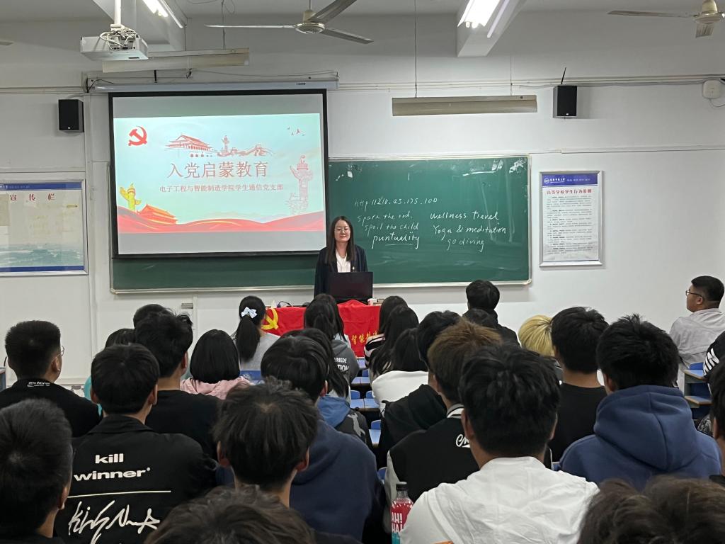 10月24日,伟德国际victor1946学生通信党支部充分发挥朋辈引领作用,为联系的2022级电子信息类7、8班新生开展入党启蒙教育。