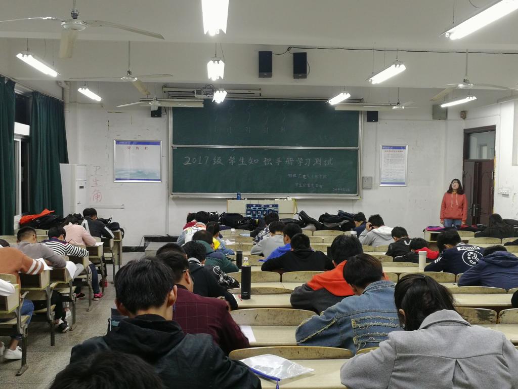 为检测我院2017级新生对入学教育应知应会知识的掌握情况和对学校各项规章制度的了解程度,4月15日晚,对我院2017级各班就《学生手册》进行统一闭卷考试。本次考试由我院学工组、辅导员老师、辅导员工作助理及公寓党支部的学生党员共同监考,我院全体2017级新生参加了此次考试。