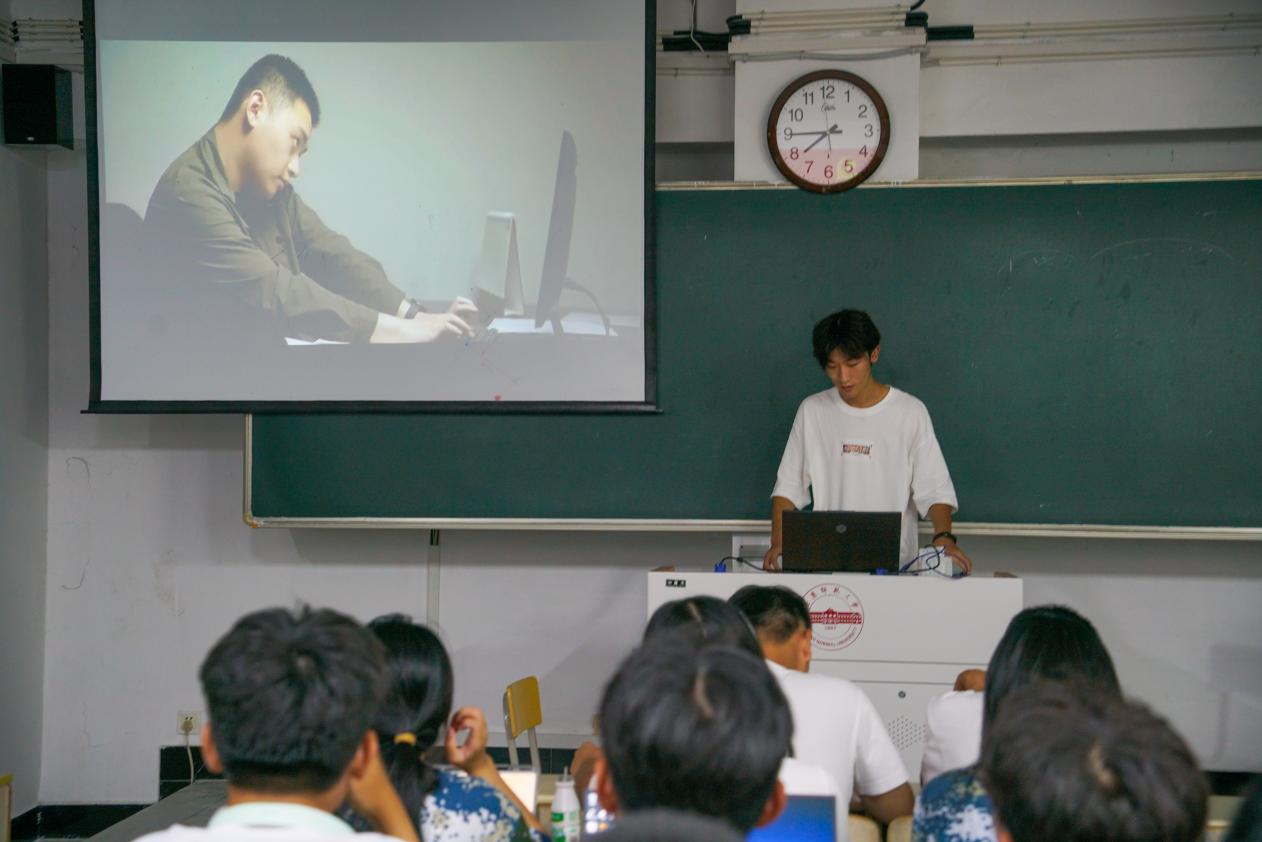 学生反诈宣传员刘悦阳同学向新生们传授如何保护个人信息、如何识别可疑电话和短信、遇到诈骗时如何冷静应对并及时报警等技巧,提醒同学们在上网时一定要提高警惕,提升自我安全防范意识,守护好自己的钱袋子,鼓励学生们积极向家人、朋友传播反诈知识,共同构建反诈防线。