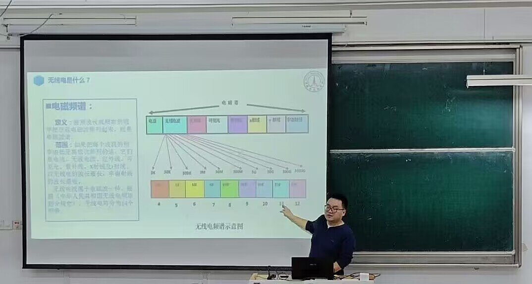 王峥由电磁波知识为起点,逐步深入到对无线电概念的讲解。从不为人知的无线电违法事件到国际竞争中无线电的重要地位讲述与剖析,生动阐述无线电对人类发展的帮助与危险,加深学生们对无线电犯罪对社会乃至国家安全的重视程度。最后向学生们介绍无线电管理局的职能责任,吸引学生积极参与无线电安全保护和推进无线电技术发展工作中,成为连接世界的一份子。