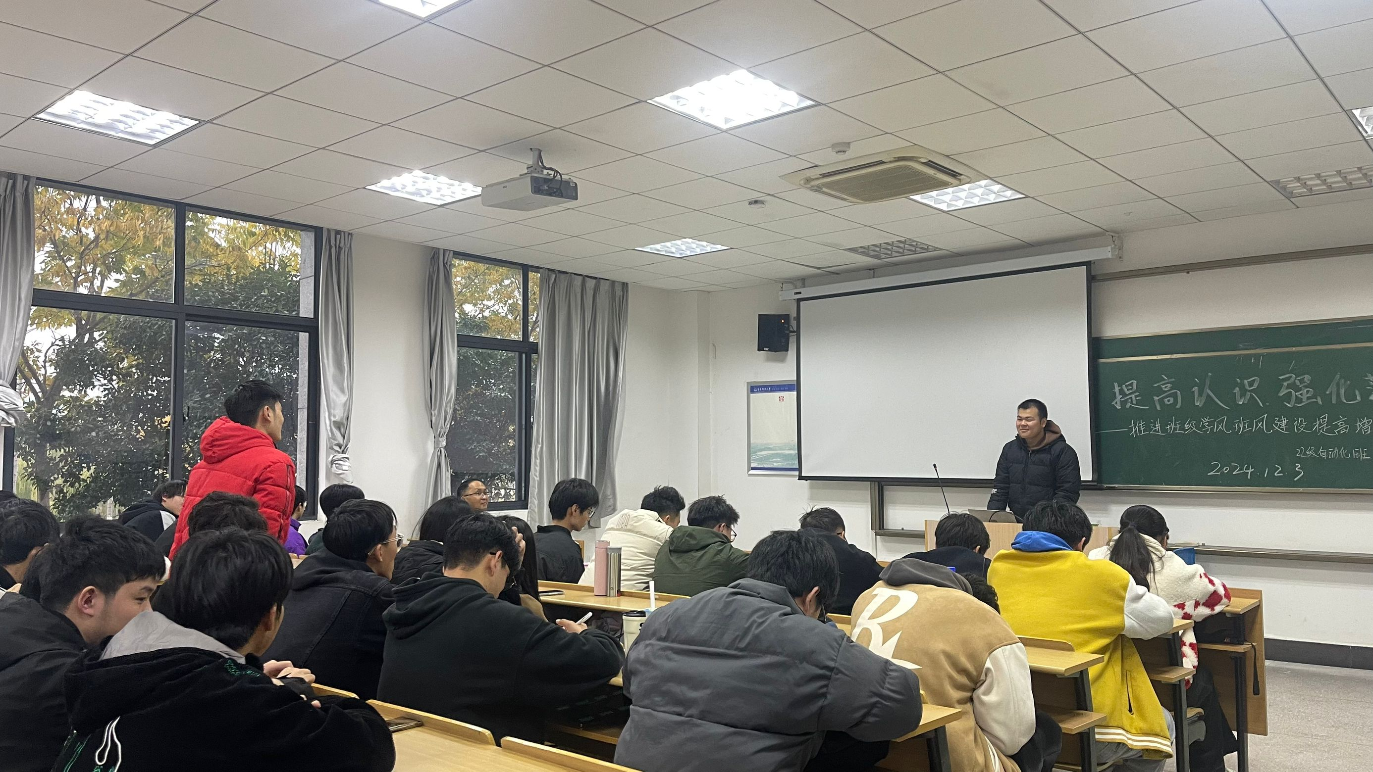 12月4日,2022级自动化1班在E楼104教室召开班级学风建设主题的班会,学习委员黄立军同学主持班会。