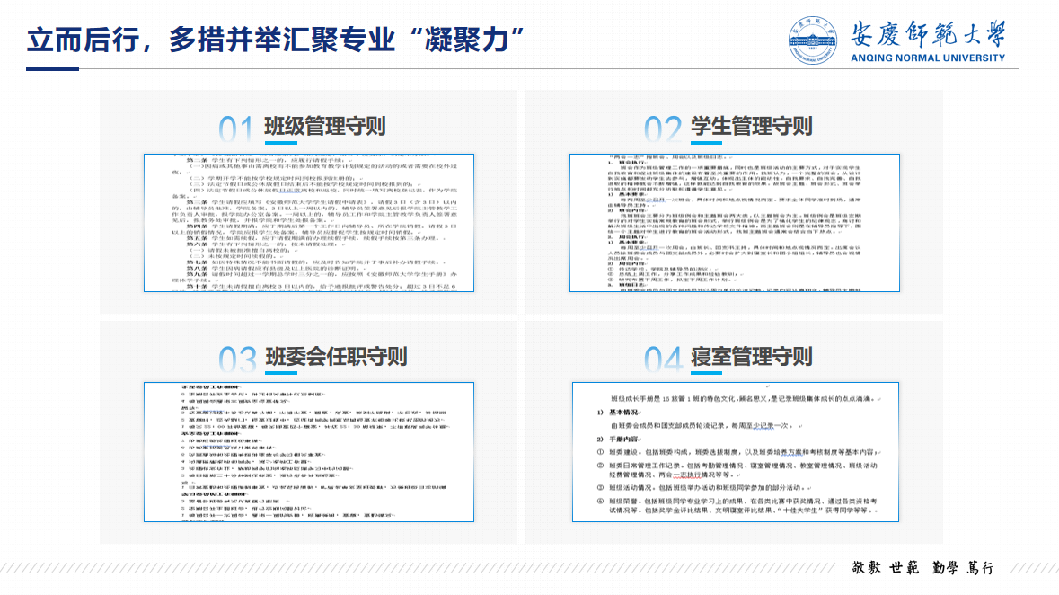 凡事预则立,不预则废。好伙伴“一帮一”、集体晚自习、班级班干、党员带头组建8个帮扶小组。邀请国家奖学金获得者、竞赛达人分享经验,帮助同学们提高专业学习成绩,学科竞赛和专业时间拓展了班级的学术氛围。两年来共获得各级各类比赛荣誉60余项,其中国家级9项和省级29项。