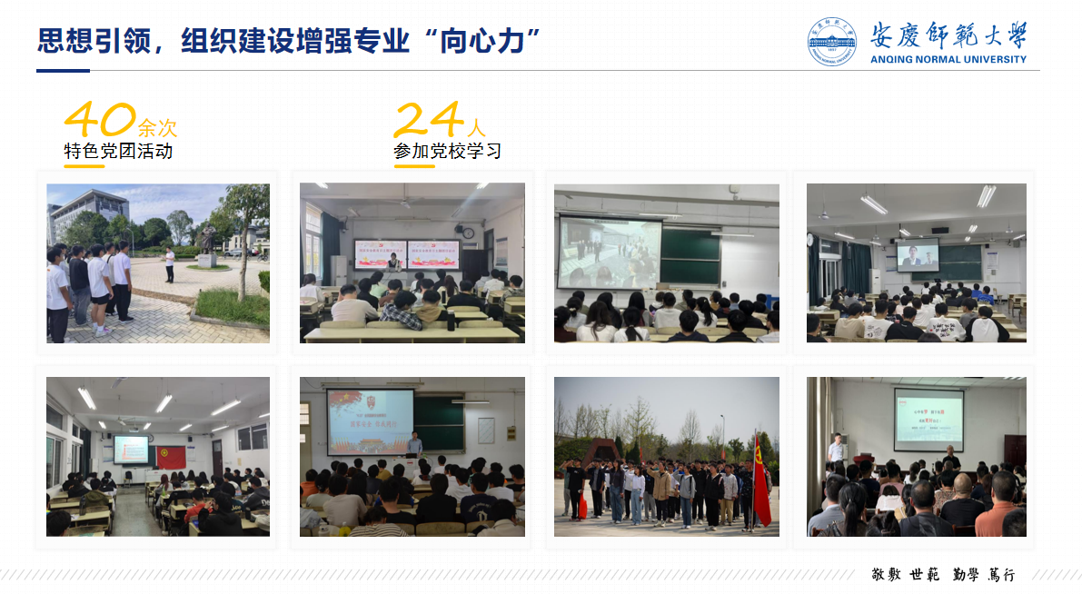 韶华飞逝,唯有拼搏。无论是科研竞赛、创业项目还是各类体育比赛、文艺表演,抑或是在各种组织及社团的任职,班级同学们都积极进取,力争上游。目前班级有7位在学校和学院担任学生骨干,100%参加校院组织的各项活动。