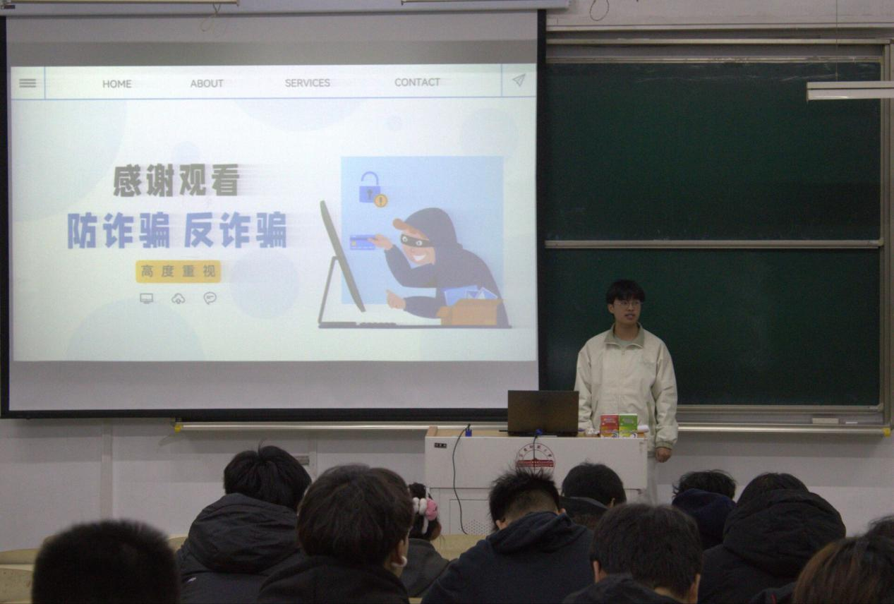 聚焦常见骗局,敲响安全警钟。宣讲通过剖析大学生群体中高发诈骗类型,揭露犯罪分子的惯用手段,如冒充熟人诈骗、网络兼职诈骗、校园贷诈骗等等。同时对这些诈骗提出了应对措施,提醒同学们不贪小便宜,警惕不明链接,要保护好个人信息,在涉及转账贷款时要确认对方身份,被诈骗后保持冷静,及时向老师和警方求助。