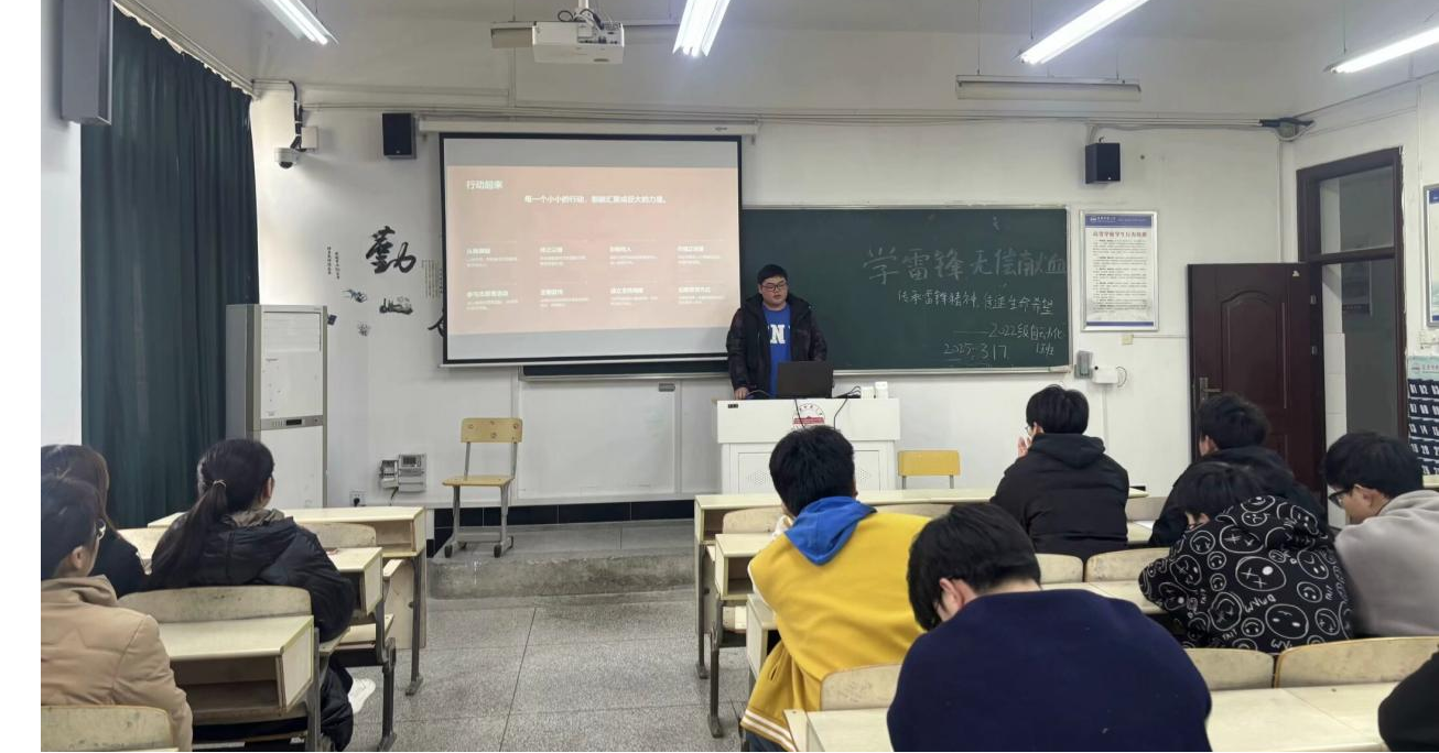 3月17日,2022级自动化1班在B楼402教室举办了“学雷锋·无偿献血”主题班会,班会由团支书陶棚宇主持。