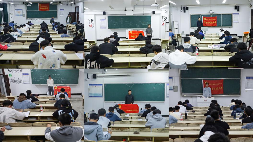 从申请入党的基本条件到中国共产党的指导思想,学院在命题时注重对党史知识考察,对新生开启入党启蒙教育。值得一提的是,学院安排各党支部里的学生们佩戴党徽担任本次的考试的“监考官”,并成立的巡查小组到各个考场进行检查。党史知识搭配朋辈引领,给新生们双重“教育”。