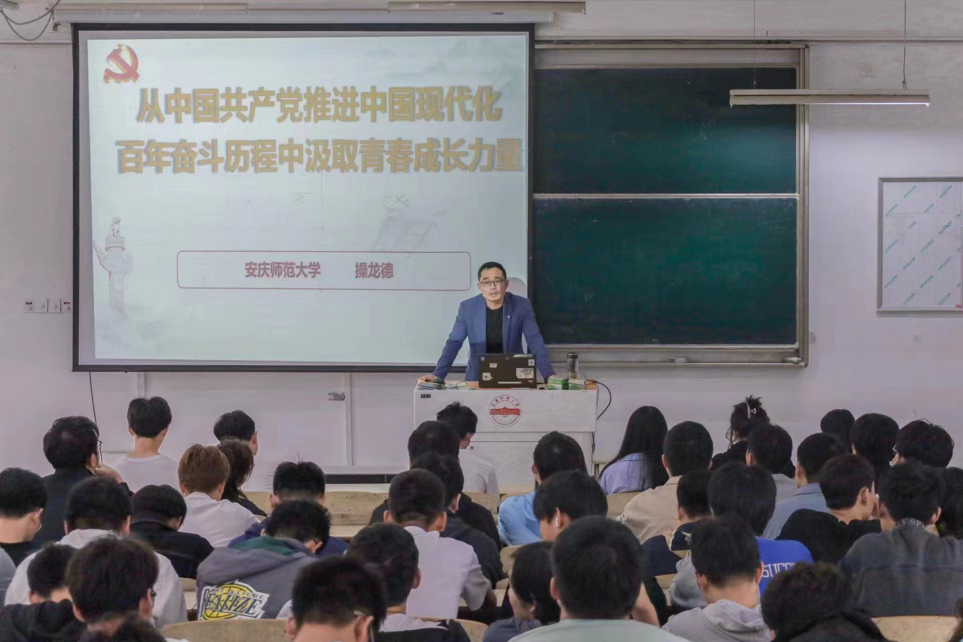 5月24日,伟德国际victor1946联合校学生处在稼先楼100多媒体教室举办“青春筑梦”资助育人报告会。报告会主题为“从中国共产党推进中国现代化百年奋斗历程中汲取青春成长力量”,学院党委委员、辅导员操龙德主持并进行宣讲,200余名学生到场参会。