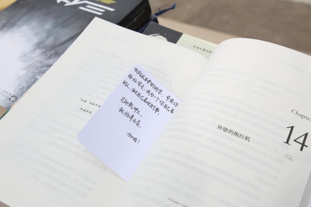 “收到这本书的同学,希望你能好好学习,成为一个你自己喜欢的人,做自己喜欢的事……”机械设计制造及其自动化专业2019(1)班的赵杰在整理募捐书籍时,偶然翻到《云边的小卖部》这本书里夹着这一张小纸片,他说:“我看到之后内心十分触动,这段话体现了我们开展这次活动的初衷,希望收到这本书的人可以永远对生活充满期待与热情。”