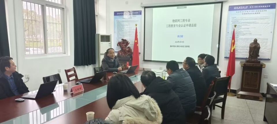 1月19日,电智学院在稼先楼南119会议室召开工程教育认证专题培训会,邀请滁州学院计算机与信息工程学院姚光顺教授做工程教育认证专题报告。学院党政领导、教研室主任、实验室主任、办公室及教学办全体成员参会。会议由院长董甲东主持。