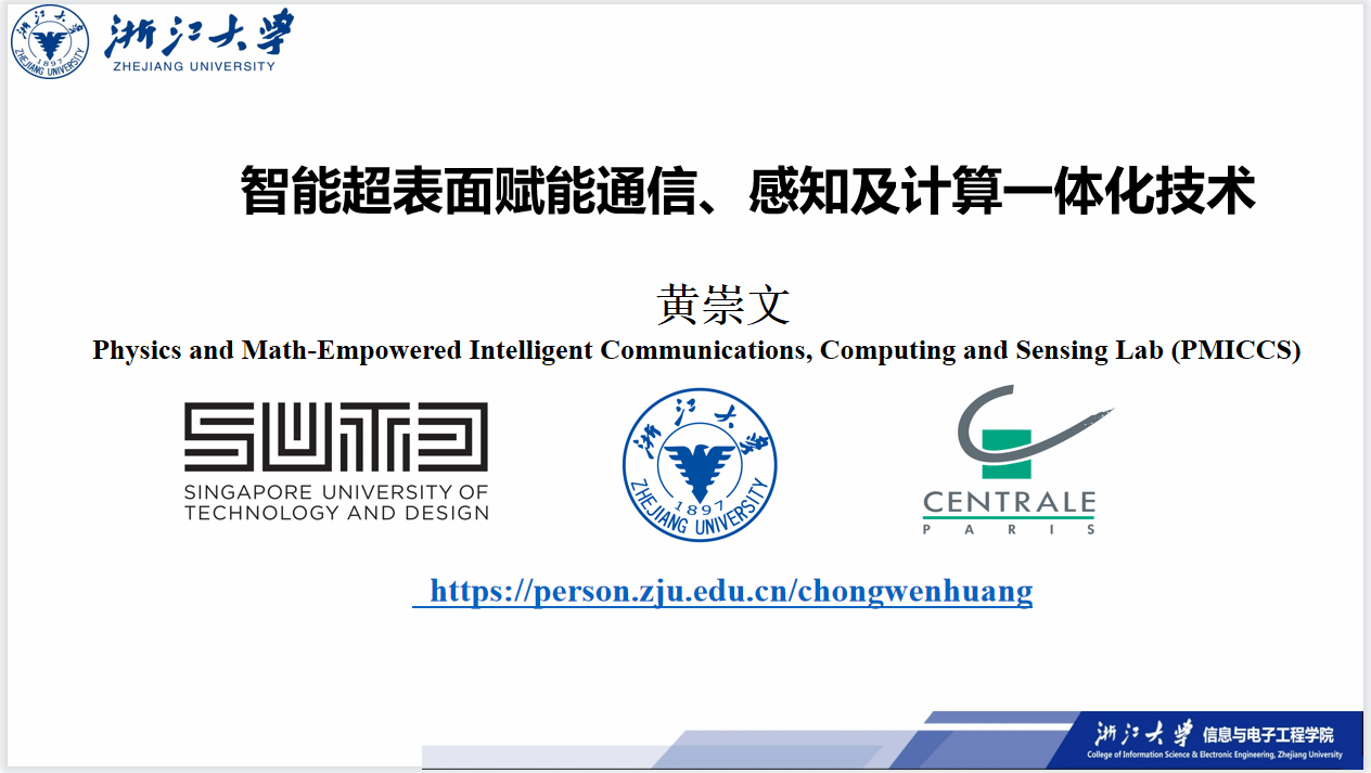 报告人简介:黄崇文,浙江大学百人计划研究员,博士生导师,国家海外优青、浙江省杰青、IEEE 通信学会亚太杰出学者、《麻省理工科技评论》中国区“35 岁以下科技创新 35 人”。先后获得IEEE马可尼论文 (Marconi Prize Paper)奖、IEEE 通信学会Fred W. Ellersick论文奖、中国自动化学会自然科学奖二等奖、华为技术合作成果转化二等奖等多项奖励。主持承担国家“十四五”重点研发、国家自然科学基金等多项省部级科研项目以及“全息MIMO 6G无线通信”重大国际横向等十余项项目。主要从事新一代6G关键无线通信技术、重点开展智能超表面技术、全息MIMO,6G无线AI等方向的研究。发表SCI 期刊论文70余篇。(撰稿/摄影:胡浪涛 审核:詹文法)