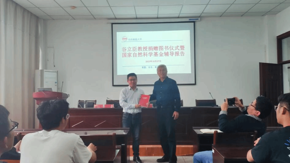 捐赠仪式后,谷立臣教授作了题为《国家自然科学基金申报体会与教训》的专题报告,谷教授结合自己在申报国家自然科学基金项目过程中遇到的问题以及科研实践经验,从基金申报的选题、撰写申报书容易出现的问题、同行专家评审要点、形式审查注意事项等方面进行了详细解读。报告会后,谷教授对我院教师的国家自然科学基金申请书进行了评阅,并与申报教师就申请书的撰写问题进行了深入交流。