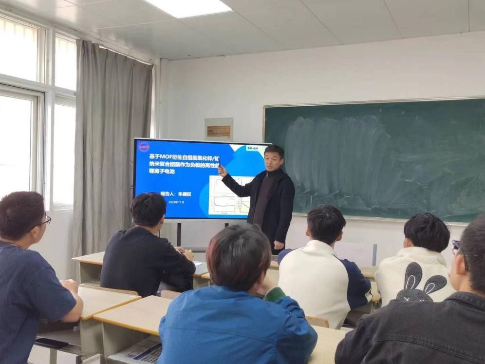 朱德权副教授首先介绍了目前国内外锂离子电池的研究现状,接着对ZnO/Co3O4。纳米粒子的制备方法和机理进行了阐述,并展示了其在锂离子电池中的优异性能。报告结束后,朱德权副教授就报告中的部分问题与现场同学进行了互动交流,对大家提出的问题一一作了解答。