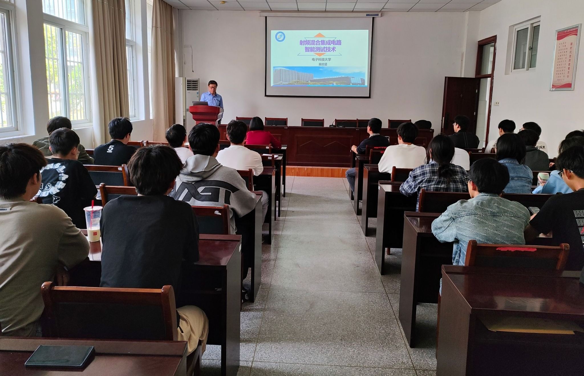 4月18日,电子科技大学正高级工程师、集成电路测试技术研究室主任戴志坚应邀作了题为“射频混合集成电路智能测试技术”的学术讲座。讲座由伟德国际victor1946副院长詹文法主持,电智学院的部分教师、本科生和研究生代表现场参加了本次讲座。