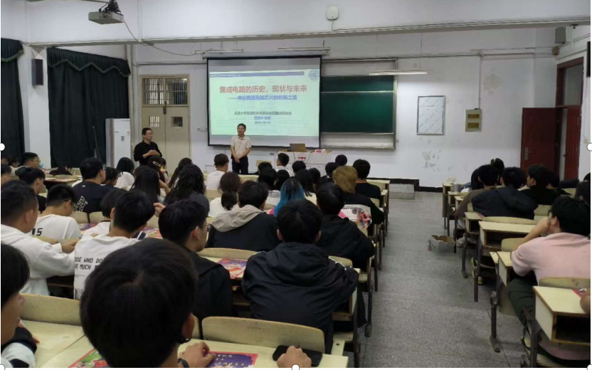 10月11日,复旦大学的曾晓洋教授为我院师生做了学术讲座,讲座由我院詹文法副院长主持,我院的部分教师、23级电信大类的一百多名学生代表参加了本次讲座,为师生们带来了一场题为“集成电路的历史、现状与未来”的精彩讲座。此次讲座不仅回顾了集成电路的辉煌历史,还探讨了当前的发展现状、并对未来进行了展望。