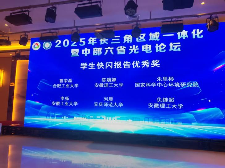10月25日,我院2023级研究生刘晨同学应邀参加2025年长三角区域一体化暨中部六省光电论坛,在大会上作题为“基于分层高斯过程回归的光声光谱环境自适应补偿方法”的学术报告,荣获最佳报告奖。