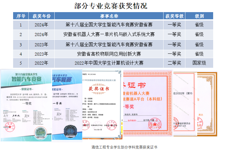 主要专业课程:信号与系统、数字信号处理、计算机网络、通信原理、移动通信、算法与数据结构、单片机原理与应用、数字图像处理、Linux系统应用与编程、嵌入式系统原理与应用等。