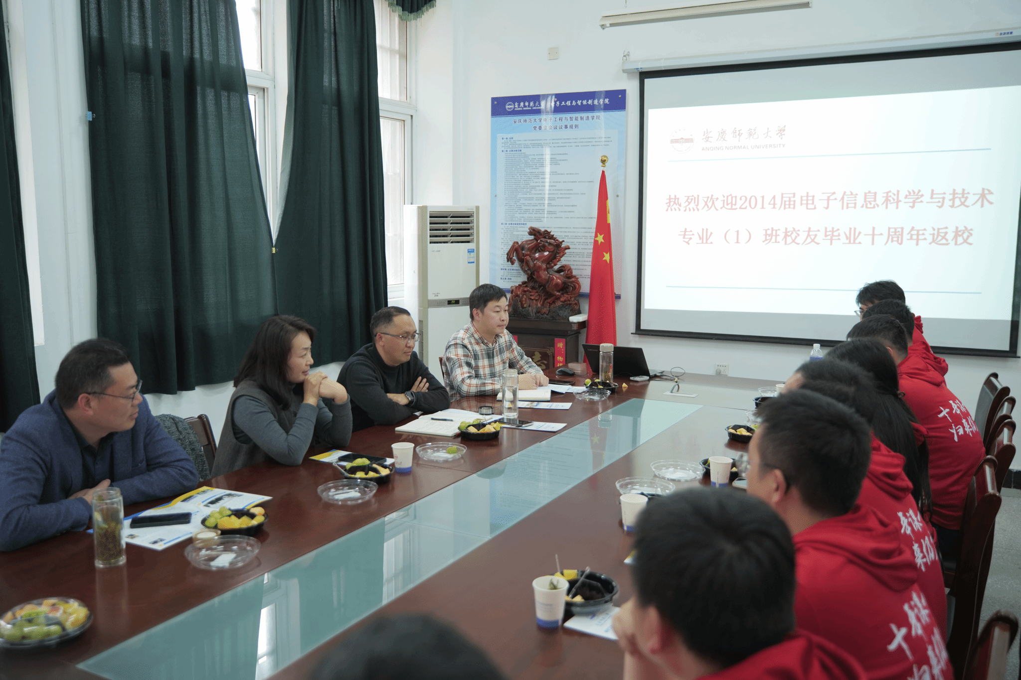11月23日,伟德国际victor19462014届电子信息科学与技术(1)班校友十余人重返母校再度聚首,追忆往昔,畅叙情谊,寄望未来。学院党委副书记高栋梁、辅导员华秀梅、教师代表查长礼等参加座谈。